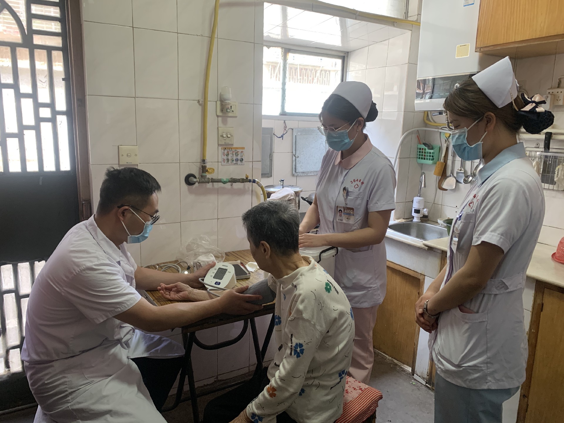 活动当天,院团委组织肾病内科、门急诊、妇产科青年医护人员,深入汉江小区行动不便的高龄老人家中进行健康检查,通过测量血压、血糖,详细询问病史及日常用药情况,提供专业的医疗建议。针对长期卧床易发的压疮问题,医护人员现场向家属指导预防方法,同时示范科学的康复动作和肢体按摩手法,帮助患者提升日常活动能力。对于行动不便的老人,青年医护主动走到跟前,蹲下身子耐心倾听需求,用“零距离”服务传递青春温度。