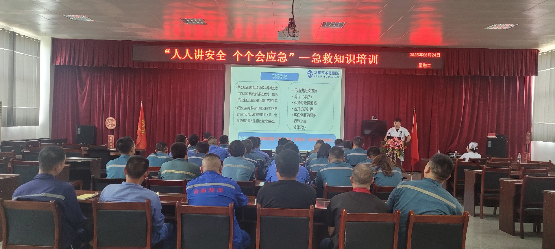 生命重于泰山,安全防范于未然。通过本次培训,切实提高了企业员工应对突发事件的应急处置能力和应急救护能力,掌握了基本的烧伤应急处理措施,为企业的安全生产提供有力保障!