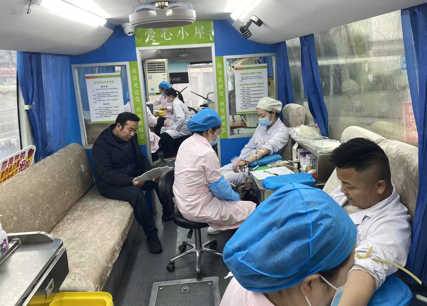 上午9时整,襄阳中心血站采血车准时抵达。此时,已有不少医护人员手持登记表,冒雨从各自科室赶来。登记台前,身着白大褂的“白衣天使”们有序地填写表格、测量血压、采血化验,现场秩序井然。